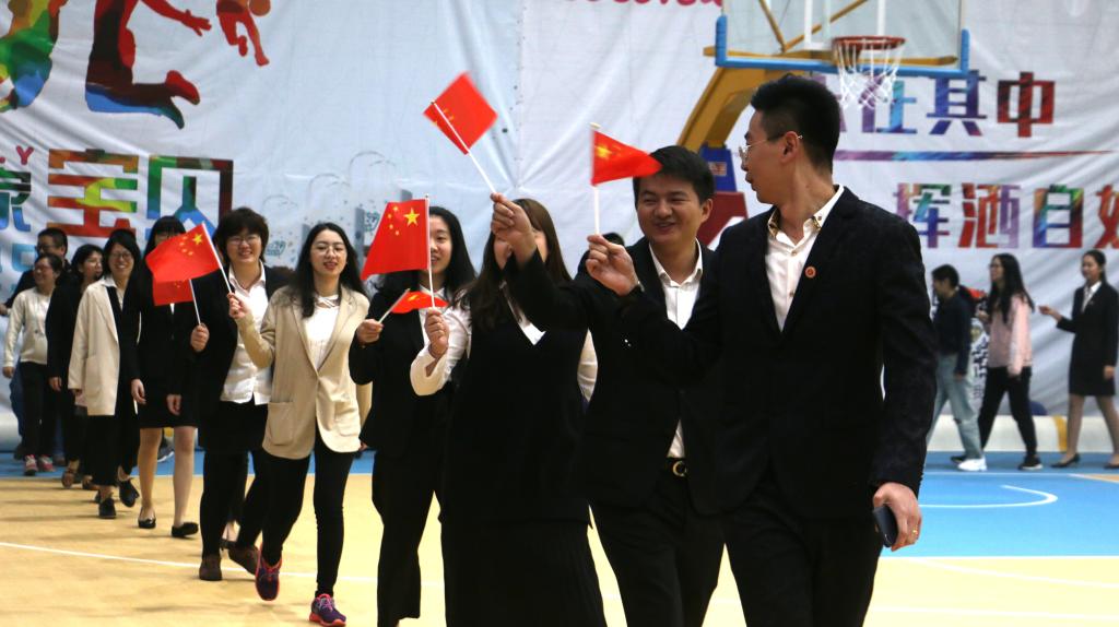 参赛的教职工迈着矫健的步伐相继入场。