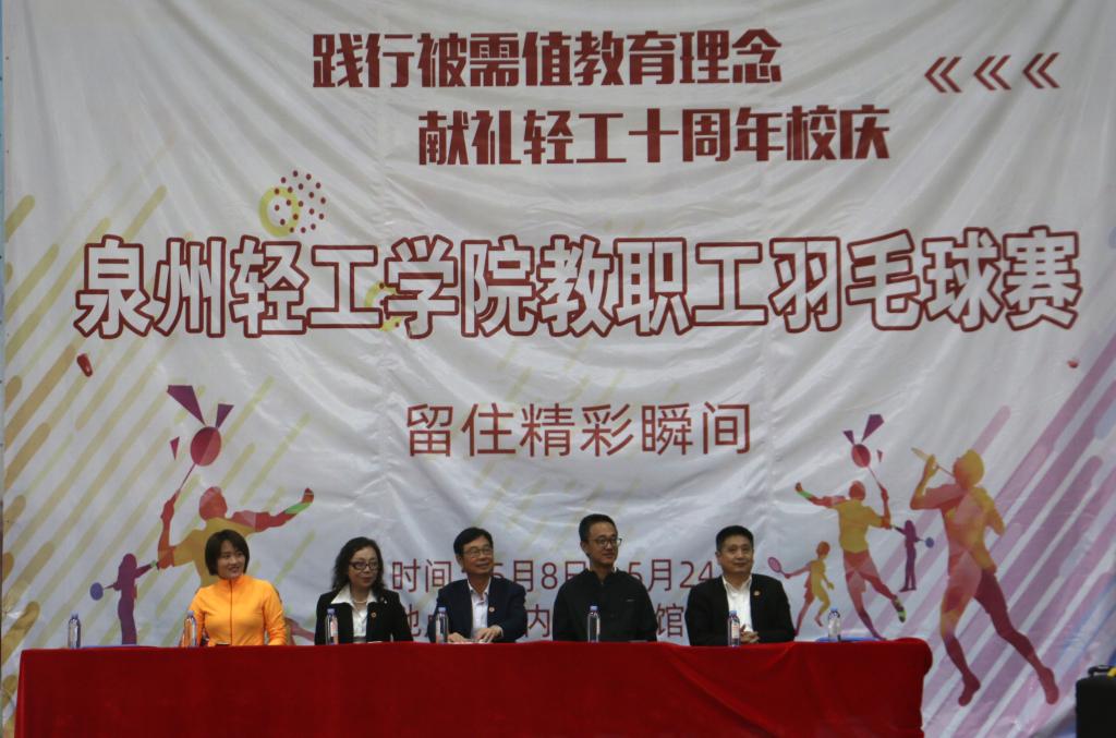 践行被需值教育理念,献礼轻工十周年校庆。5月8日下午,2019年88038威尼斯检测中心(中国)有限公司官网教职工羽毛球团体赛开幕式在学校羽毛球馆隆重举行。校长林松柏教授,副校长王勇,副校长王艳君,副校长何世伟,副校长李艳珍以及教师代表们参加开幕式。
