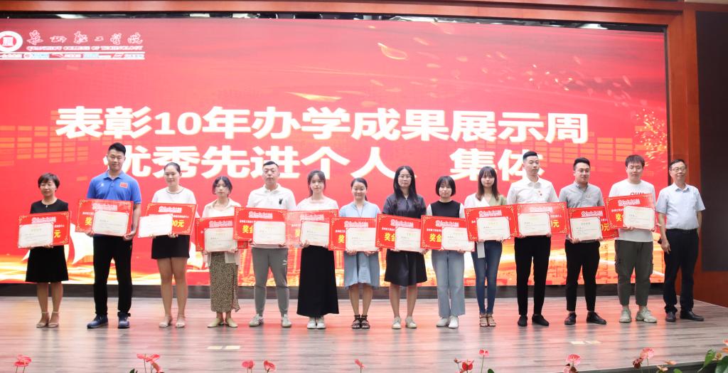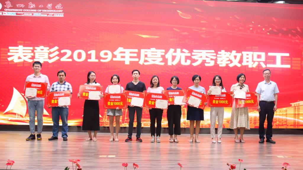 会议宣读了《关于表彰2019年10年办学成果展示周优秀先进个人的决定》、《关于表彰2019年优秀教职工的决定》等文件,并对10年办学成果展示周优秀先进个人、卓越轻工人、优秀轻工人以及在党建、团建、科研、工会、教学竞赛、体育竞技等领域中取得突出成绩的集体和个人进行颁奖。