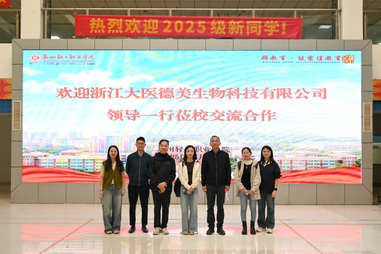 12月11日下午, 浙江大医德美生物科技有限公司领导黄嘉莹一行莅临我校参观交流,学校副校长庄培荣及相关部门相关负责人陪同。