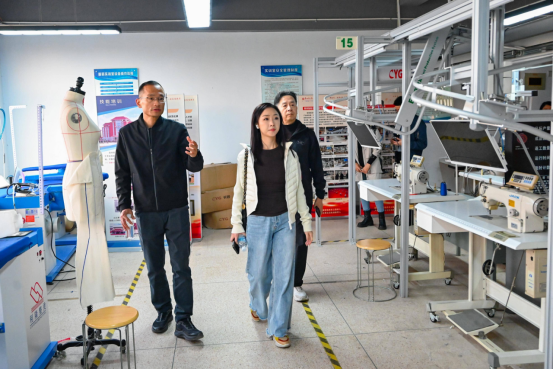 黄嘉莹一行先后参观了我校鹿艺鞋楦生产性实训基地、鞋类设计与工艺智能化生产性实训基地、食品综合实训基地、安踏服装校内生产性实训基地、世界技能大赛时装技术项目中国集训基地、工业机器人基地、智慧机器人基地、集成电路开发与测试基地等。