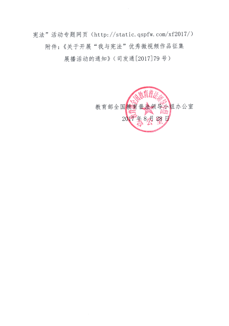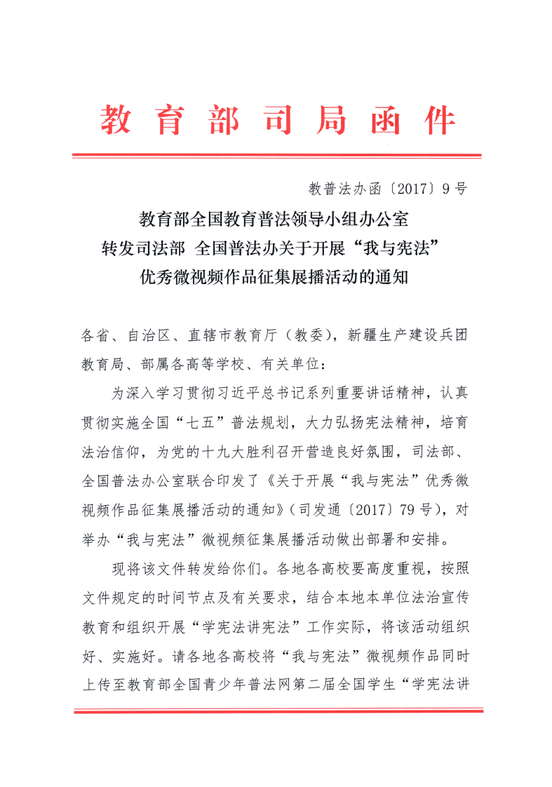 下一页:司法部全国普法办关于开展“我与宪法”优秀微视频作品征集展播活动的通知