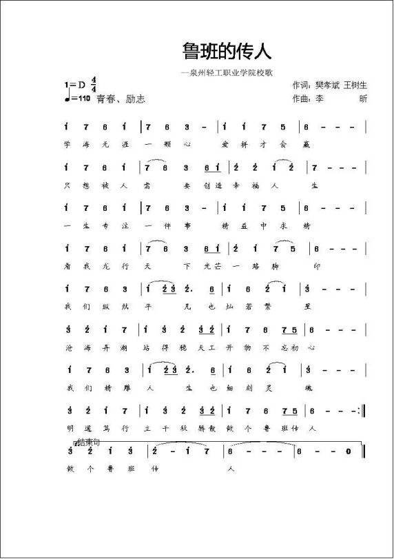 第六十二条 学校校歌为:《鲁班的传人》(附后)