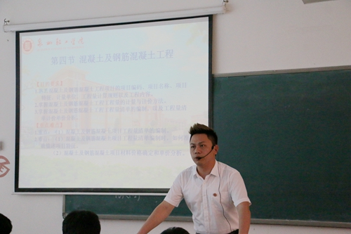 此次评选工作时间是9到15周,总共有14位老师参与评选,有建筑工程计量与计价、计算机应用基础、C语言程序设计 、VI设计标志与企业形象设计等课程。名师评选课首讲由建筑系蔡加强老师开讲,他在教学过程中把课堂内容跟生活实际相结合,更加注重实践与理论相结合,效果良好。