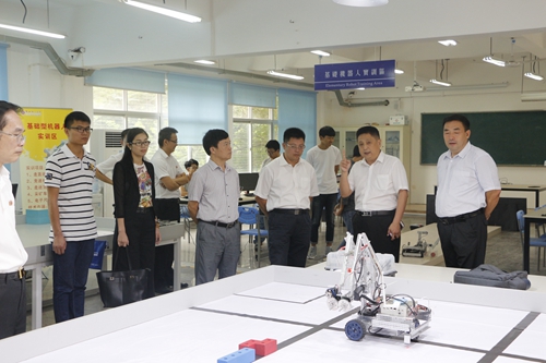 此次会议是继3月福建省“二元制”人才培养模式改革试点现场推进会后的又一在我院顺利召开的政府、学校、企业三方共同探讨“二元制”人才培养模式改革的会议,对推进我院“二元制”试点项目的发展,探索“二元制”培养模式改革的新形式具有十分重要的意义。在会议开始之前,张文东处长一行在王树生博士,林卫挺院长、王艳君副院长、何世伟副院长等院领导陪同下还参观了我院的机器人实训室,融媒体技术公共实训基地,安踏校内生产实训基地,食品工程系实训基地,鞋类设计智能化生产性实训基地,金融、财金实训中心、艺体中心等校内实训基地。