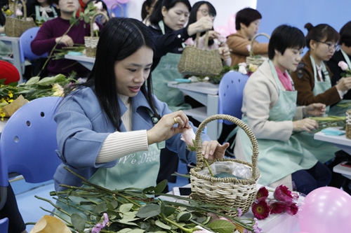 2018年3月9日,由西园街道妇工委、总工会、卫计办联合开展的庆“三·八”节花艺沙龙活动在我校2教103室举行,来自西园街道各机关、社区、企业的73位女性职工参加了沙龙。