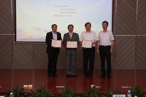 6月24日下午,两岸职业教育论坛第八次峰会在我校学术报告厅举行。泉州市社会科学界联合会主席李培德,泉州市教育局副局长李树和,泉州市教育局高教科科长黄世琴,浙江金融职业学院书记周建松教授,台北海洋科技大学校长唐彦博博士,澳门城市大学教务长李树英博士,澳门城市大学注册处处长洪光华,我校执行董事王树生博士,校长林松柏,副校长王勇、杨承杰、王艳君、何世伟以及泉州市各中高职院校等领导出席了会议,学院全体教师教师和部分学生到场聆听。