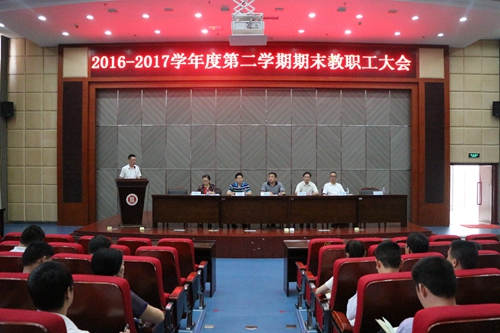 6月20日下午,我院在学术报告厅举行2016-2017年度第二学期期末教职工大会,执行董事王树生博士,院长林卫挺,党委副书记黄建嘉,副院长王勇、王艳君、何世伟以及全体教职工出席了大会,会议由党政办公室主任侯挺南主持。