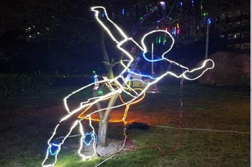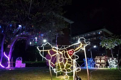 此次灯光作品展利用灯光与草木结合的方式,在宁静的夜晚焕发出别样的光芒。微风徐来,七彩的灯光在树枝上摇曳,美轮美奂。引人注目的莫过于在草坪上由灯光组成的“被需值”三个字,提高“被需值”教育,是我院倡导的新理念。