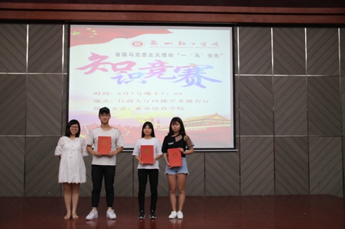 按照学院党委关于参加第三季福建省高校大学生学习马克思主义理论“一‘马’当先”知识竞赛的要求,我校素养培育学院牵头组织,由大学生马克思主义学习社配合,于6月8日晚在学院四楼学术报告厅举行了“一‘马’当先”知识竞赛学校选拔赛。赛后,将从最终胜出的优秀选手中选出5名代表学院,参加8月份在福建教育电视台举办的第三季福建省高校大学生学习马克思主义理论“一‘马’当先”知识竞赛的现场录制。