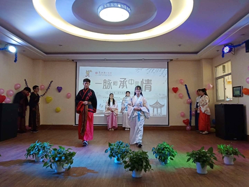 将数日来所学得的汉家礼仪、中文歌曲、武术展演于台上